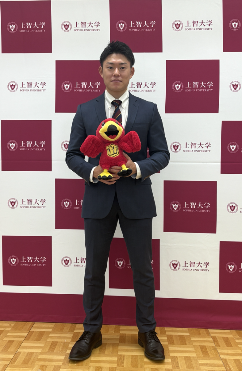 10月23日(木)に開催された2025年新人選手選択会議「プロ野球ドラフト会議」において、硬式野球部 正木 悠馬選手(投手、経済学部経営学科4年)が、埼玉西武ライオンズより育成枠6位で指名を受けました。本学学生がプロ野球ドラフト会議において指名を受けるのは、上智大学の歴史の中でも初めての快挙となります。