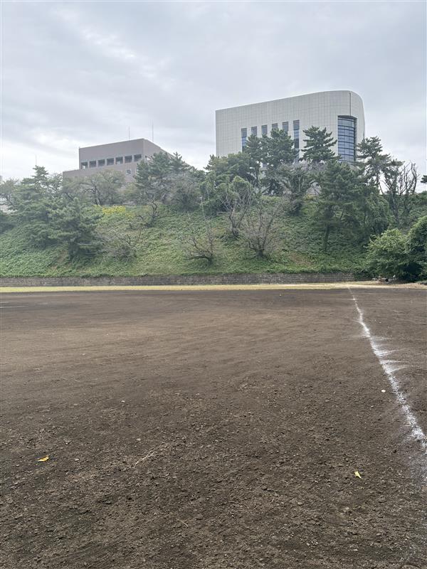 一方で、上智大学にはスポーツ推薦制度がなく、体育会への支援体制もまだ十分とは言えません。そのため、練習環境も決して恵まれているとは言えず、部員自らが日々の整備を担っています。グラウンドは狭く、防球ネットの補修や雑草・小石の除去なども手作業で行っています。用具も限られており、屋内練習場がないため雨天時は練習が制限されます。照明器具も十分ではなく、部室も不足しているなど、決して恵まれた環境とは言えません。